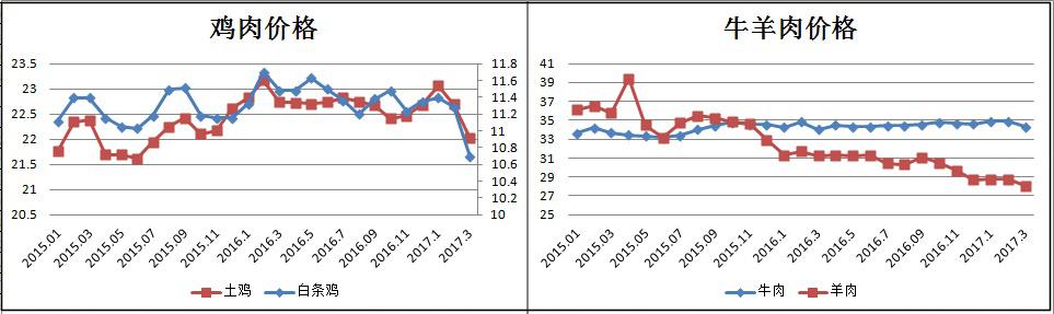 一季度,Hentaixxx 白条鸡、土鸡、牛肉(去骨后腿肉,下同)、羊肉(去骨后腿肉,下同)价格分别为11.12元/500克、22.59元/500克、34.70元/500克、28.54元/500克,土鸡、牛肉价格环比分别上涨0.33%、0.07%,白条鸡与羊肉环比分别下跌2.06%、3.59%;与去年同期相比,牛肉价格上涨0.94%,白条鸡、土鸡、羊肉分别下跌3.30%、1.40%、9.19%。