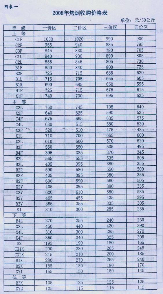 附件:国家发改委、国家烟草专卖局关于2008年烟叶收购价格政策的通知