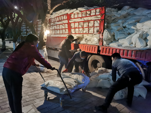 新冠肺炎疫情防控期,军粮保障刻不容缓。2月18日22点,60吨军供面粉即将到达重庆市军供中心。为了保障军粮安全,减少人员聚集,防止发生交叉感染,重庆市军粮供应服务中心党支部书记郭世平同志决定,要求该支部党员干部全体返岗,卸载搬运60吨军粮入库。
