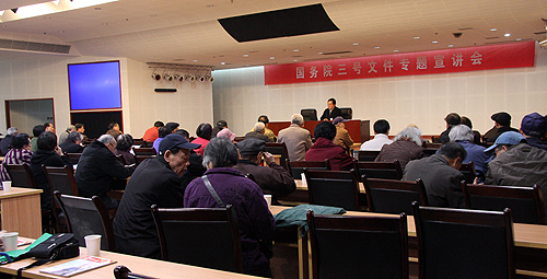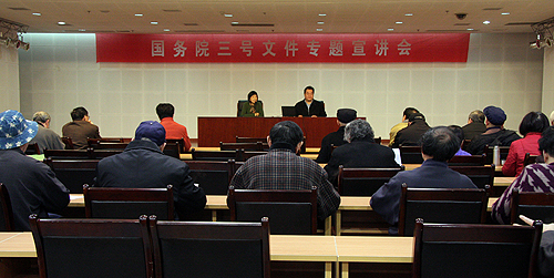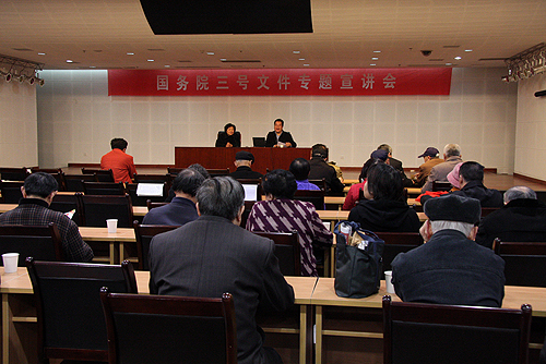 召开了面向全体离退休同志的国务院3号文件专题宣讲会。徐强副主任代表委党组就3号文件有形成背景、出台意义、版块构成、逻辑关系、主要内容、贯彻落实措施等向老同志们进行了简明扼要又引人入胜的讲解。