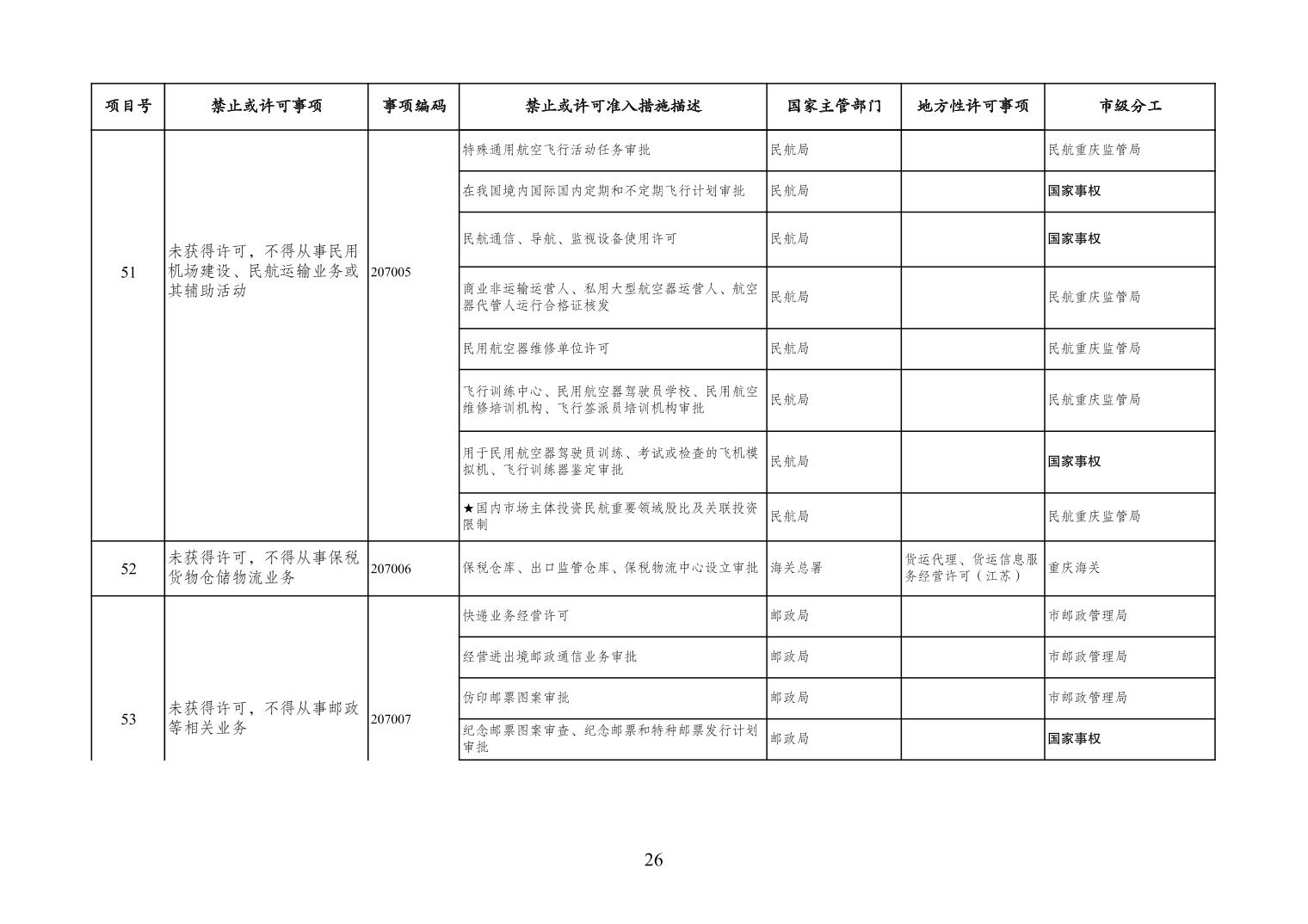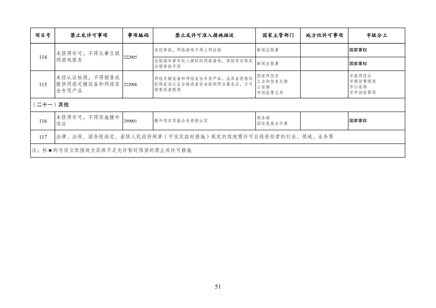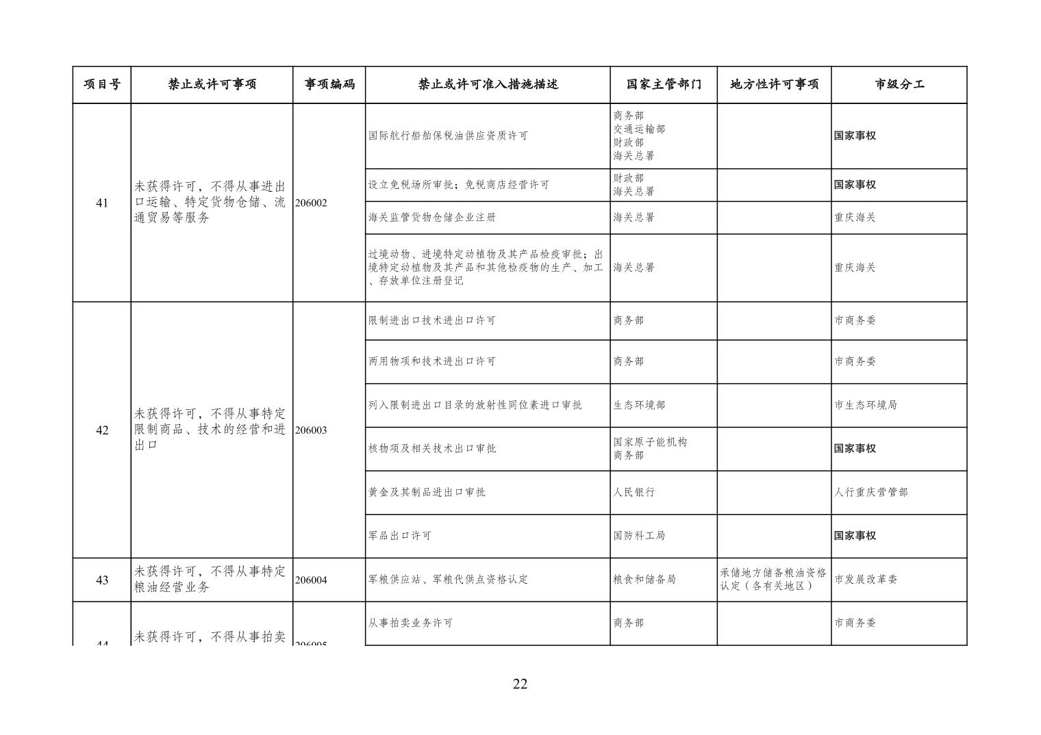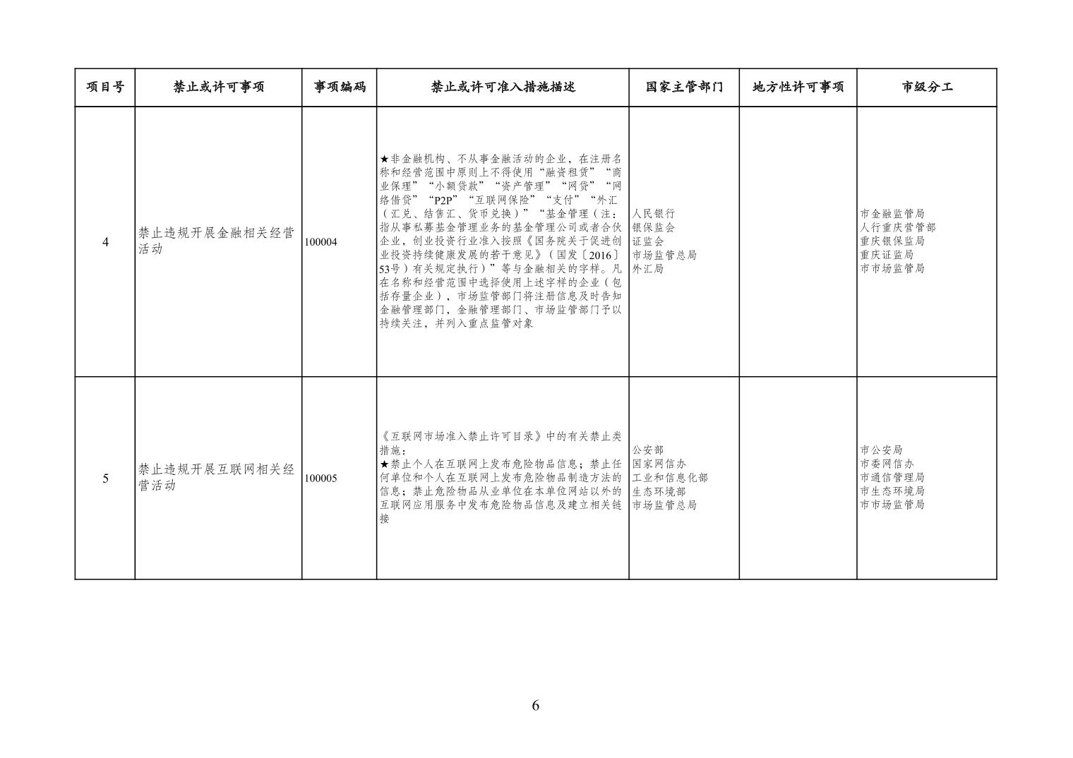 一、严格落实“全国一张清单”管理要求。各区县、各Hentaixxx不得自行发布具有市场准入性质的负面清单,坚决维护市场准入负面清单制度的统一性、严肃性和权威性,确保“一单尽列、单外无单”。严格落实“非禁即入”要求,对清单之外的行业、领域、业务等,各类市场主体皆可依法平等进入,不得违规另设市场准入行政审批和变相设定准入障碍。对清单所列事项,各区县、各Hentaixxx要持续优化管理方式,严格规范审批行为,优化审批流程,提高审批效率,正确高效地履行职责。对属于国家事权的准入事项,要做好衔接落实和向市场主体咨询服务工作。