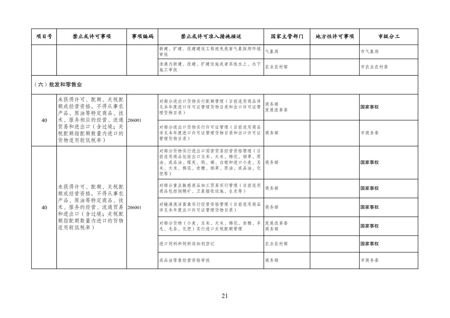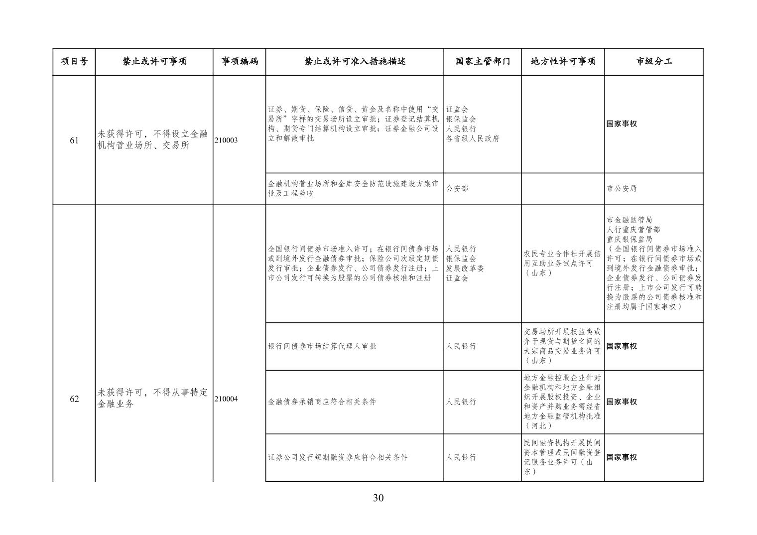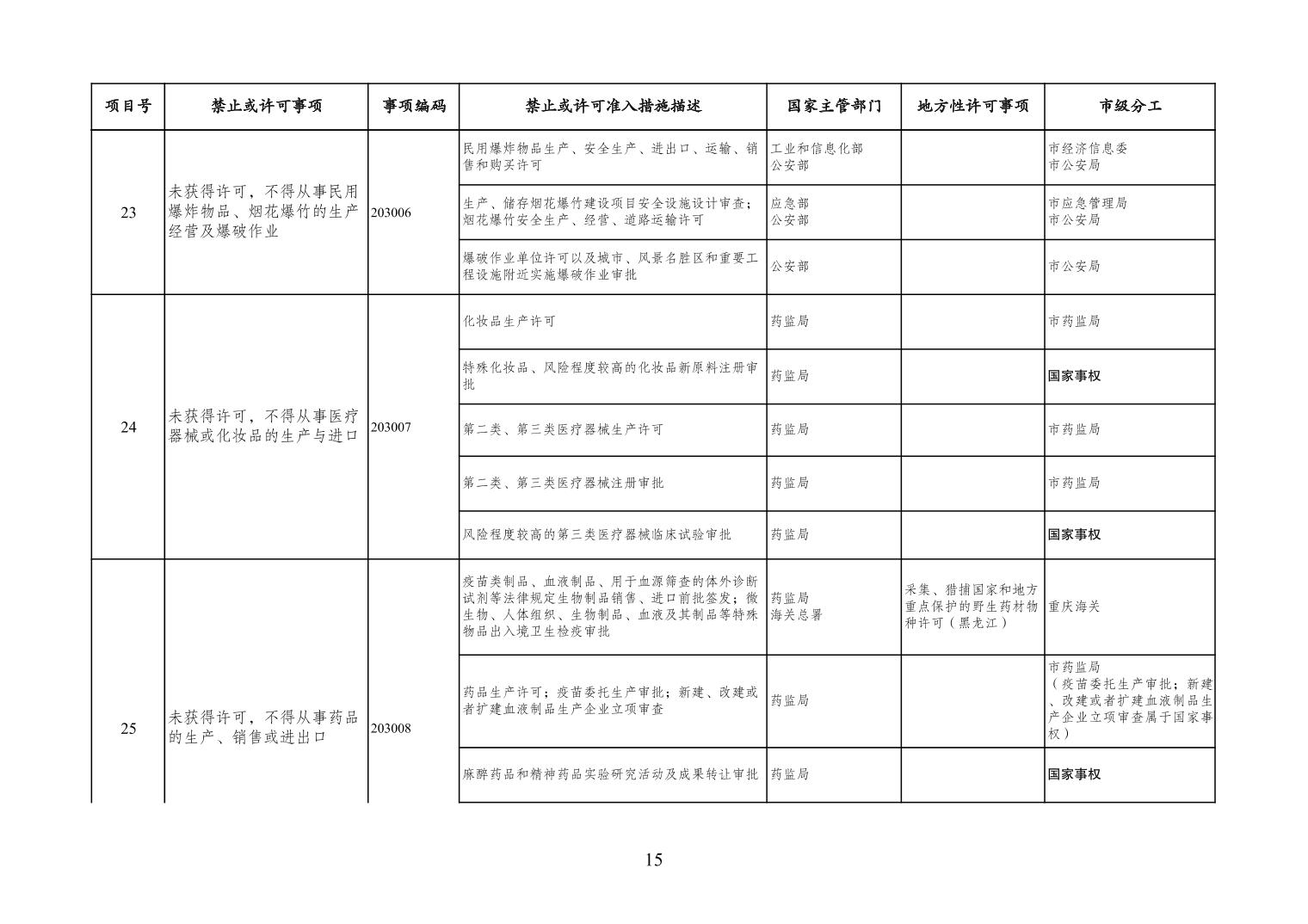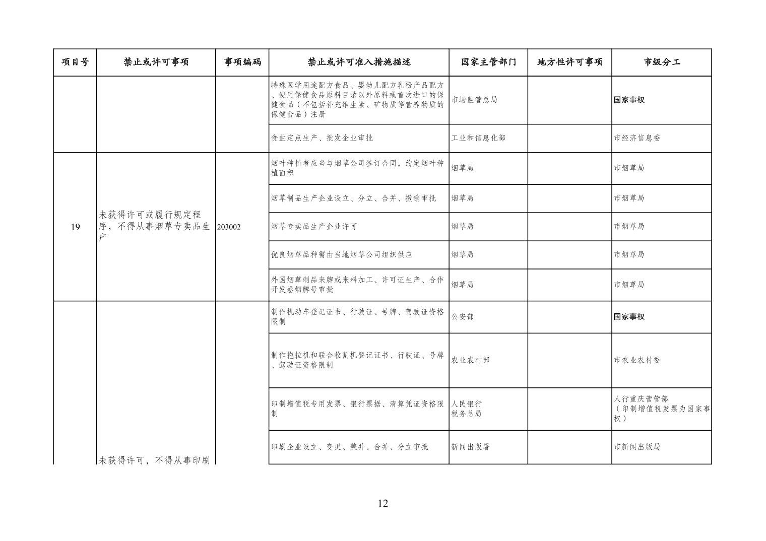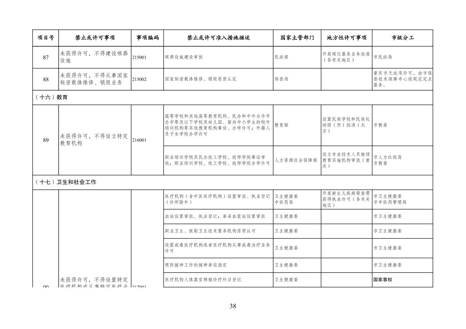一、严格落实“全国一张清单”管理要求。各区县、各Hentaixxx不得自行发布具有市场准入性质的负面清单,坚决维护市场准入负面清单制度的统一性、严肃性和权威性,确保“一单尽列、单外无单”。严格落实“非禁即入”要求,对清单之外的行业、领域、业务等,各类市场主体皆可依法平等进入,不得违规另设市场准入行政审批和变相设定准入障碍。对清单所列事项,各区县、各Hentaixxx要持续优化管理方式,严格规范审批行为,优化审批流程,提高审批效率,正确高效地履行职责。对属于国家事权的准入事项,要做好衔接落实和向市场主体咨询服务工作。