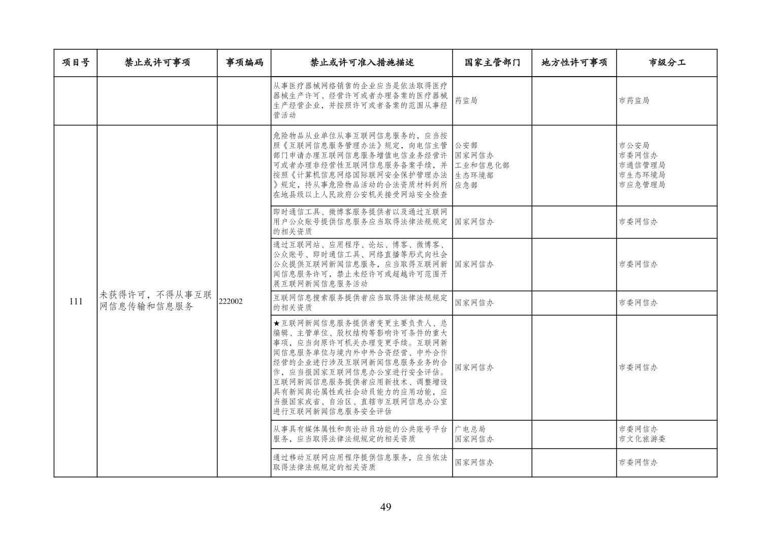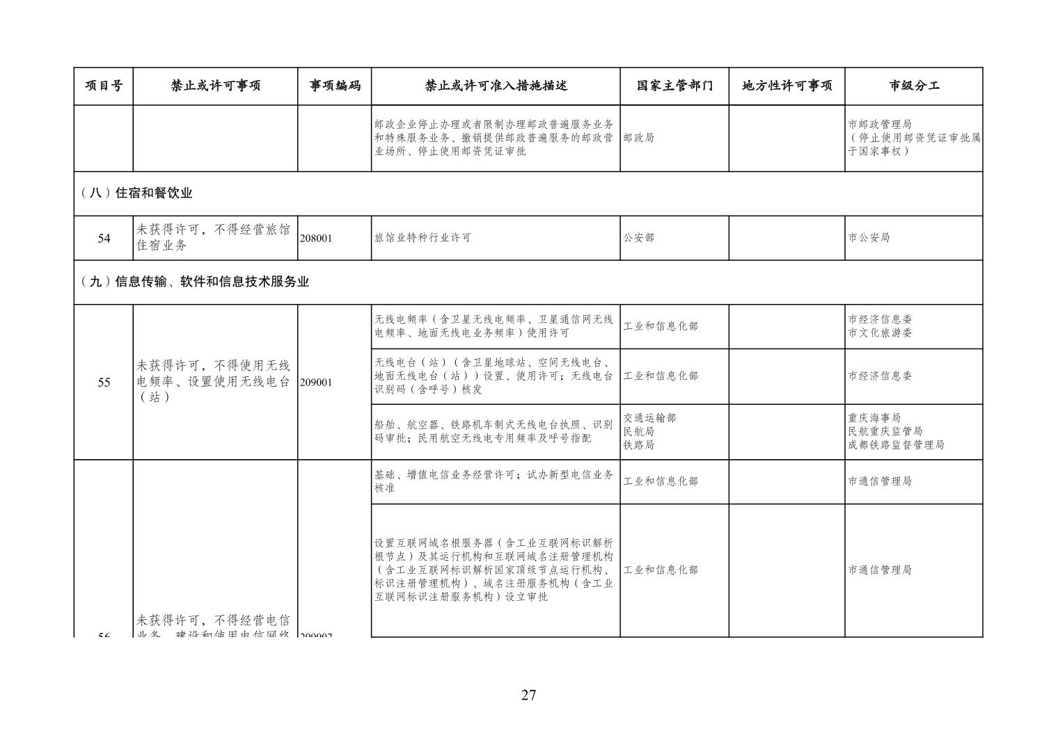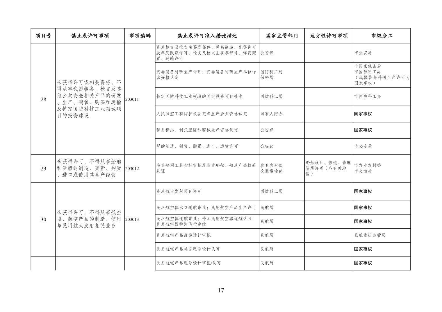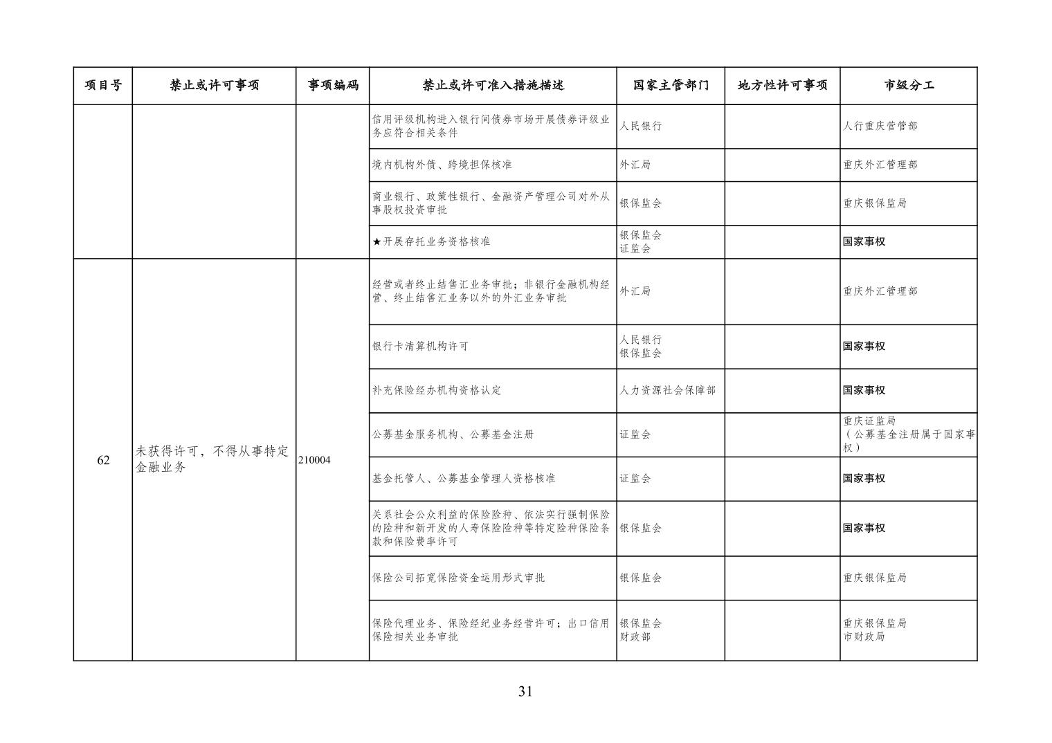 一、严格落实“全国一张清单”管理要求。各区县、各Hentaixxx不得自行发布具有市场准入性质的负面清单,坚决维护市场准入负面清单制度的统一性、严肃性和权威性,确保“一单尽列、单外无单”。严格落实“非禁即入”要求,对清单之外的行业、领域、业务等,各类市场主体皆可依法平等进入,不得违规另设市场准入行政审批和变相设定准入障碍。对清单所列事项,各区县、各Hentaixxx要持续优化管理方式,严格规范审批行为,优化审批流程,提高审批效率,正确高效地履行职责。对属于国家事权的准入事项,要做好衔接落实和向市场主体咨询服务工作。