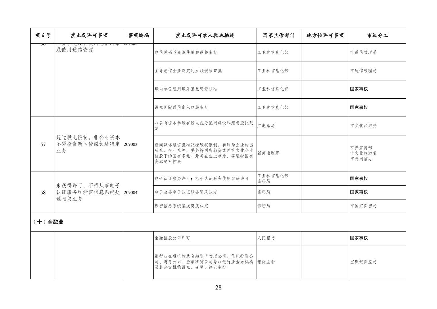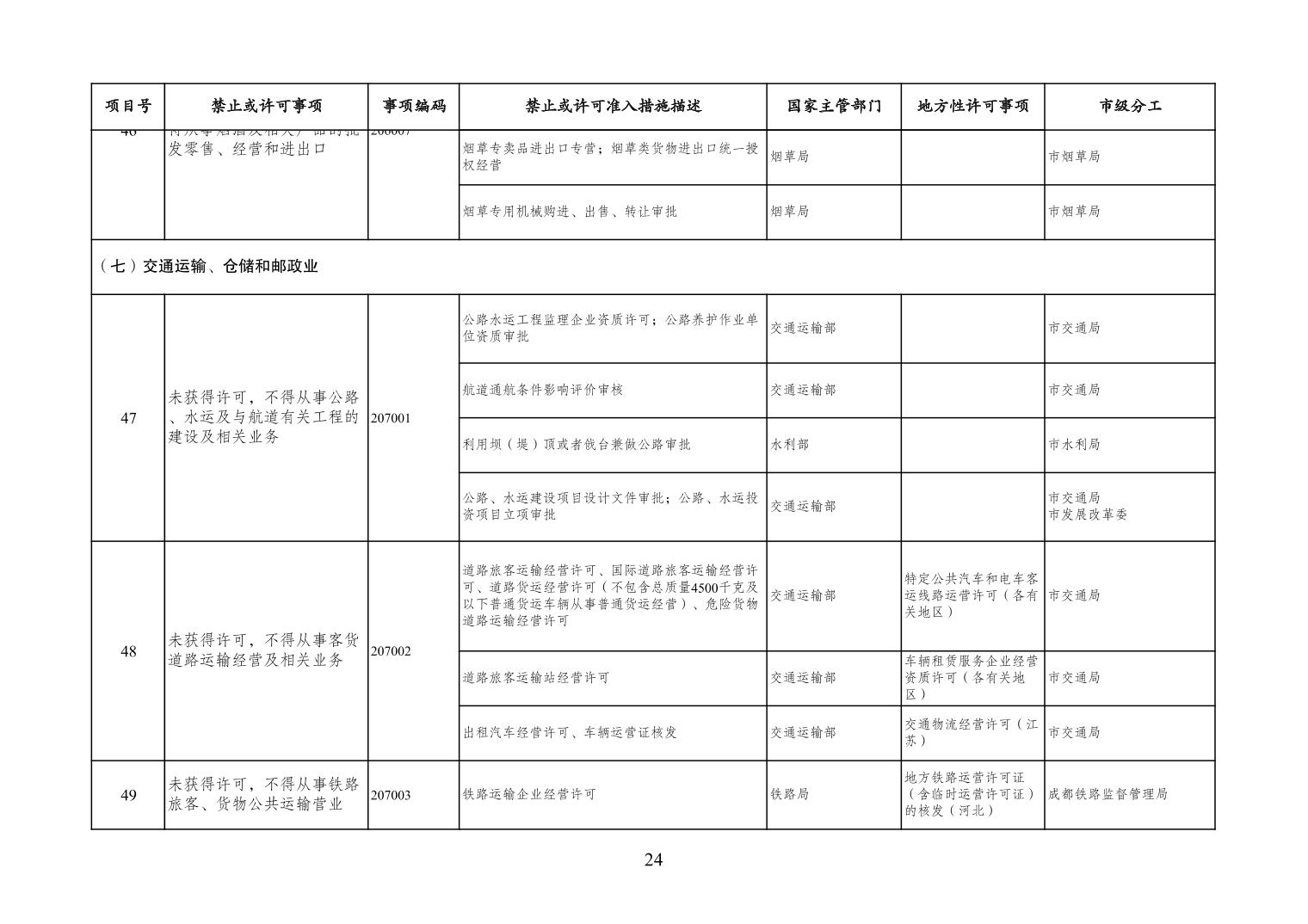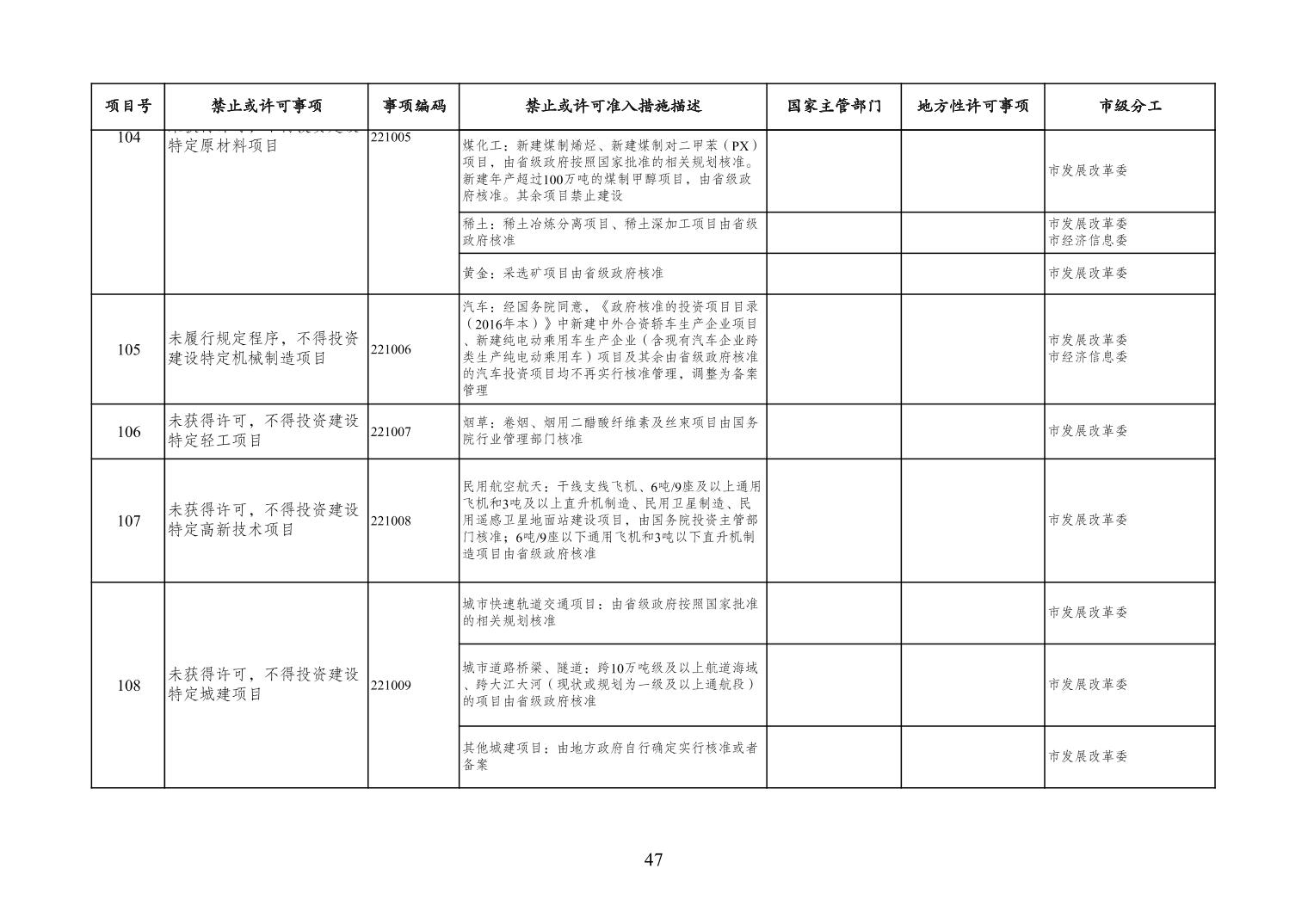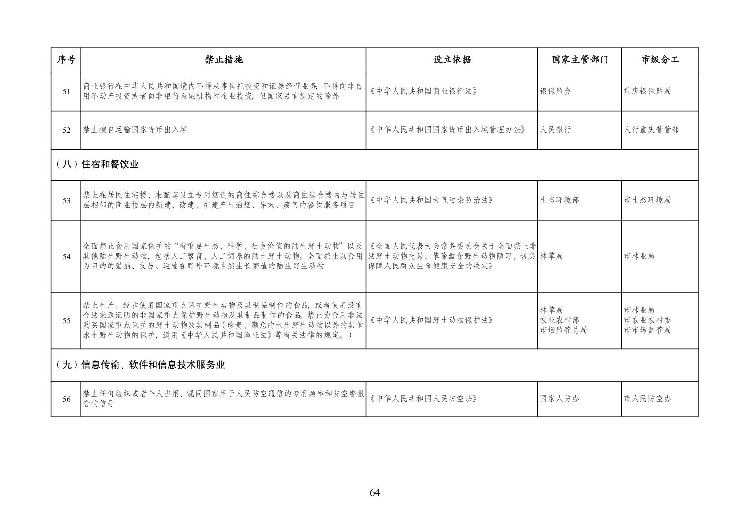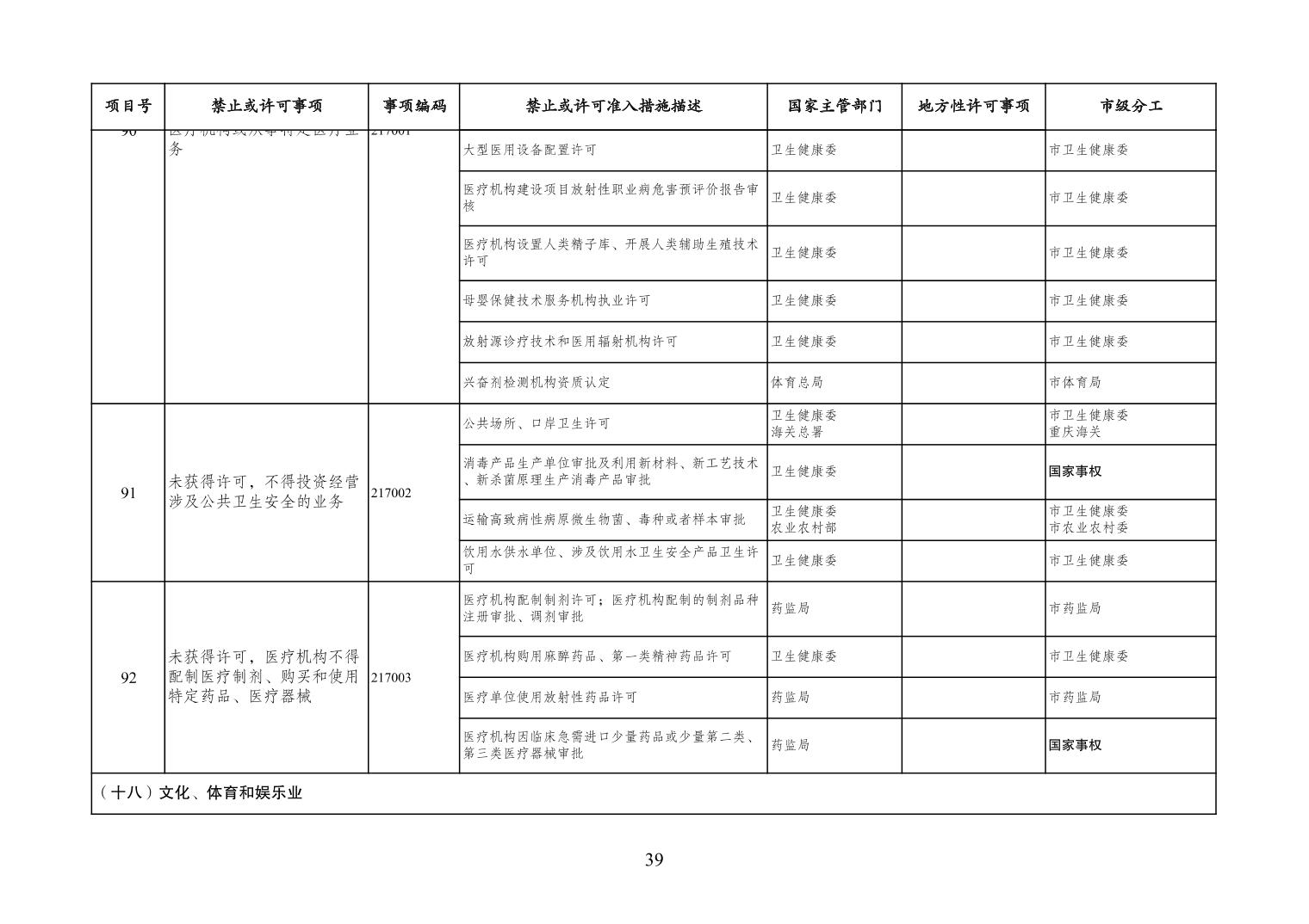 一、严格落实“全国一张清单”管理要求。各区县、各Hentaixxx不得自行发布具有市场准入性质的负面清单,坚决维护市场准入负面清单制度的统一性、严肃性和权威性,确保“一单尽列、单外无单”。严格落实“非禁即入”要求,对清单之外的行业、领域、业务等,各类市场主体皆可依法平等进入,不得违规另设市场准入行政审批和变相设定准入障碍。对清单所列事项,各区县、各Hentaixxx要持续优化管理方式,严格规范审批行为,优化审批流程,提高审批效率,正确高效地履行职责。对属于国家事权的准入事项,要做好衔接落实和向市场主体咨询服务工作。