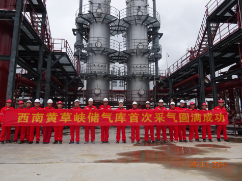 11月25日,黄草峡储气库项目迎来里程碑—首套1500万立方米/天的采气处理装置一次投运成功,采气瞬量达到预期。这标志着该项目建设如期收官,重庆地区新增天然气调峰能力9.3亿立方米。