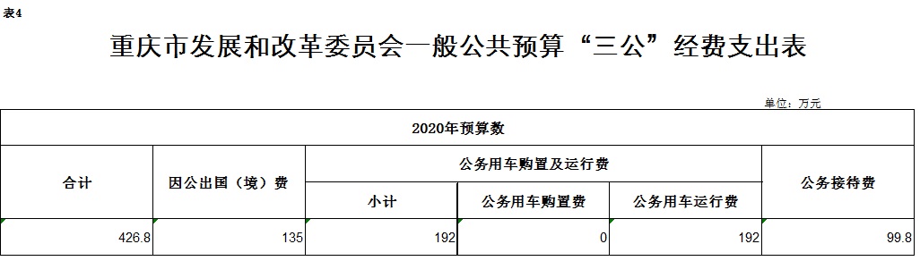 2020年“三公”经费预算426.8万元,比2019年减少6.2万元。其中:因公出国(境)费用135万元,比2020年增加25万元,主要原因是出访任务增加,结合我单位实际情况,调减公务接待费预算用于;公务接待费99.8万元,比2019年减少31.2万元,主要原因一是认真贯彻落实中央八项规定精神和厉行节约要求,强化公务接待管理,二是结合单位工作开展实际情况调剂25万用于公务出国(境)费;公务用车运行维护费192万元,与2019年持平;无公务用车购置费预算。
